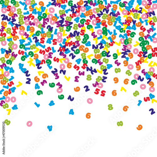 Falling colorful numbers. Math study concept with flying digits. Splendid back to school mathematics banner on white background. Falling numbers vector illustration.