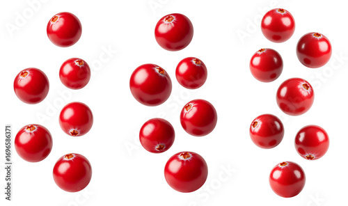Falling cranberries set PNG. Fresh red flying falling down isolated. Cranberry fruit full of vitamins suspended in air PNG. Vegan vegetarian red cranberries isolated