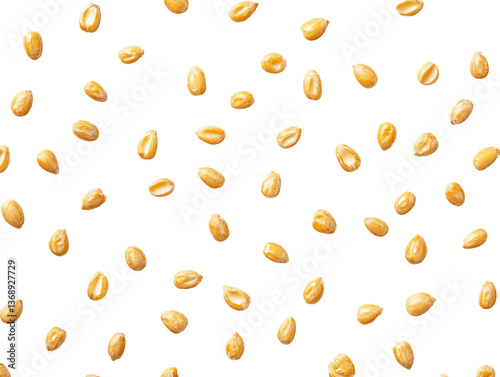 Falling Golden Wheat Grains on Transparent Background, PNG