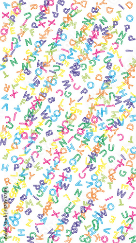 Falling letters of English language. Colorful sketch flying words of Latin alphabet. Foreign languages study concept. Fine back to school banner on white background.