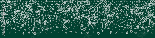 Falling letters of English language. Sketch chalk flying words of Latin alphabet. Foreign languages study concept. Stunning back to school banner on blackboard background.