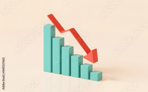 Falling Profits A Symbolic Depiction of Financial Loss With a Graph Decreasing Illustrated with Red Arrow and Aqua Bars