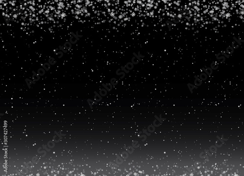 Falling snowflakes illustration. Snowfall symbol in different random shapes. Can be used as Christmas greeting cards, web banners, e-mail signatures with wishes and other projects.