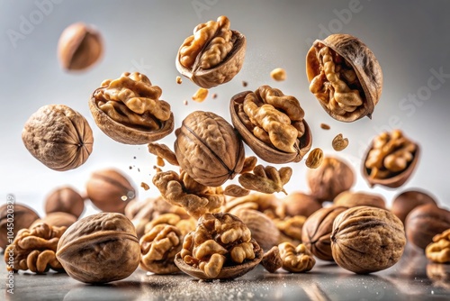 Falling Walnuts on Isolated White Background - Nature's Bounty, Healthy Snacks, Organic Ingredients, Nutty Delights, Culinary Uses, Food Photography, Natural Textures, Rustic Elements, Harvest Season