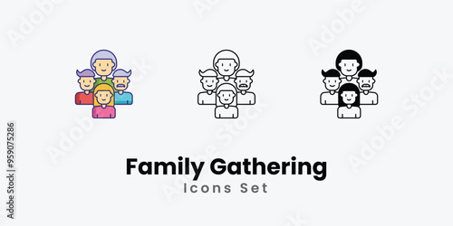 Family Gathering Icons thin line and glyph vector icon stock illustration