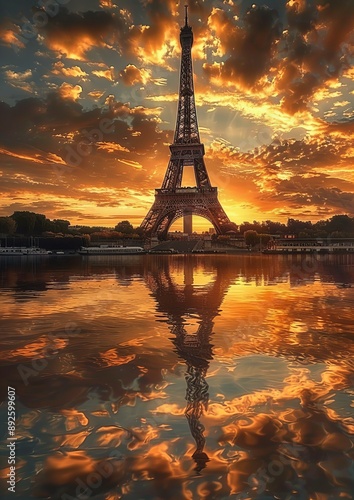 Famous places in Paris: Eiffel Tower. Hyper-realistic illustration.