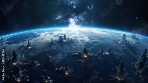fantasy background with alien planet planetar landscape, ai tools generated image