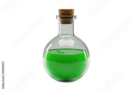 Fantasy Magic Potion Flask with Green Fluid Isolated on Transparent Background