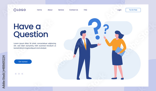 FAQ question concept, customer support, problem, solution. flat vector illustration landing page template