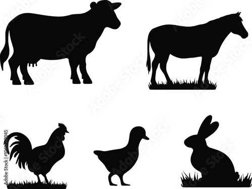 Farm animals silhouettes, vector illustration.