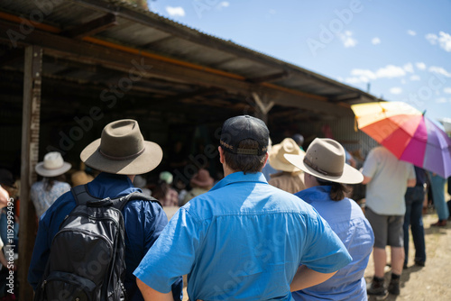 farmers at a field day learning on a farm. learning about agriculture and innovation listen to experts. farming community together in for a growers field day talking to agronomist