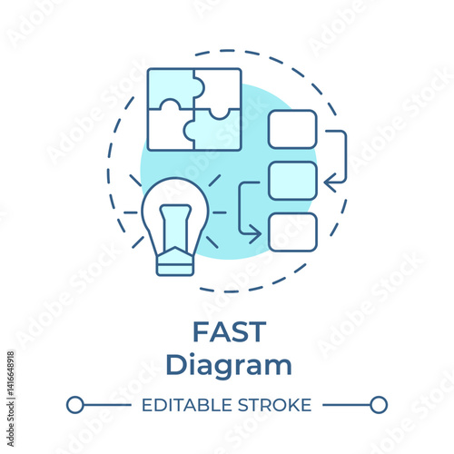 FAST diagram soft blue concept icon. Function analysis system technique. Business, corporate. Round shape line illustration. Abstract idea. Graphic design. Easy to use in infographic, presentation