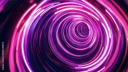 Fast light motion speed effect. Vector realistic illustration of abstract neon pink, purple rays, circular centric motion on black background, space travel route perspective, explosion energy warp