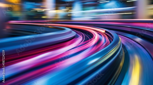 fast-moving conveyor belt with packages sliding swiftly through, with a futuristic logistics system optimizing delivery speed