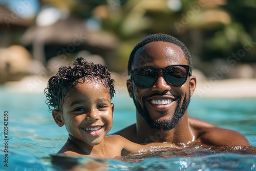 Father and son enjoying vacation, Generative AI