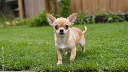Fawn smooth coat chihuahua dog in the garden