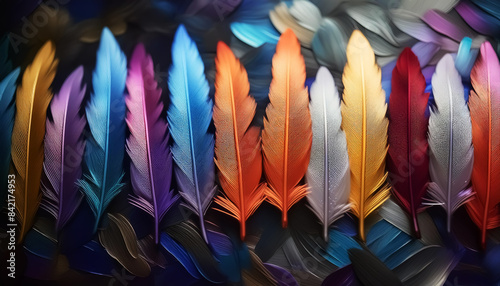 feathers pattern, colorful feather texture. Wall Art Poster Print Design for Home Decor, Decoration Artwork, High Resolution Wallpaper & Background for Computer, Smartphone, Cellphone, Mobile Phone