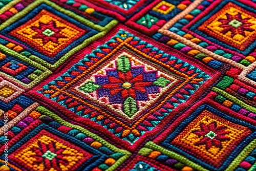 Featuring intricate geometric shapes and natural motifs, this vibrant Shipibo textile design is a stunning display of cultural artistry, combining bold colors and detailed patterns.
