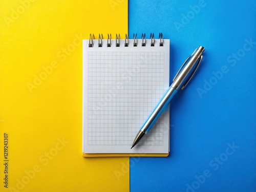 February 24th: Notebook and Pen on Vibrant Yellow-Blue Background - Stock Photo