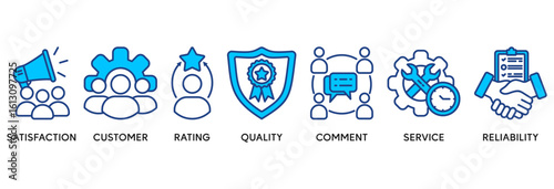 Feedback icon set vector illustration concept relate to satisfaction, customer, rating, quality, comment, service and reliability