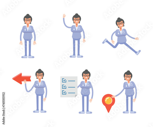 female doctor characters set in various poses vector illustration