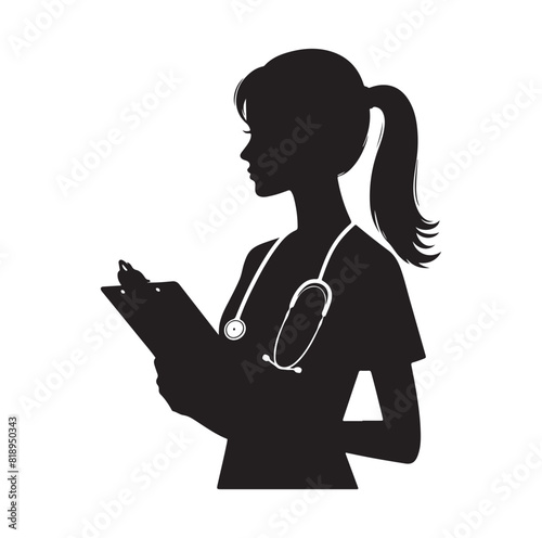 female doctor silhouette illustration set. physicians standing in different position vector illustration