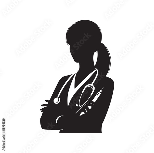 female doctor silhouette illustration set. physicians standing in different position vector illustration