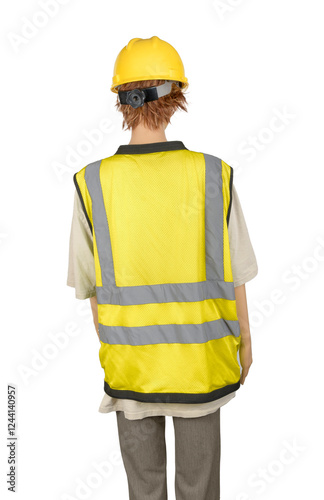 Female Mannequin In Construction Clothes With Copy Space On Vest