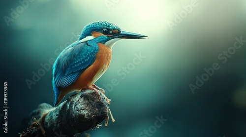 Feminine kingfisher resting gracefully on a natural branch in serene environment