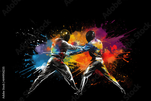 fencing fight splash color on background