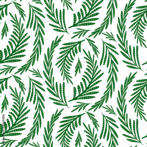 Fennel herbaceous seamless pattern on a white background. Fabric with grass fields. Wallpaper with a branches of dill. Vector natural background with green stems for wrapping paper