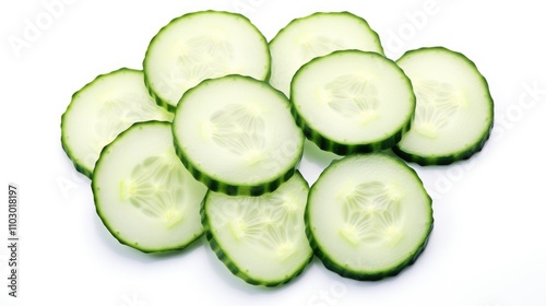 Fermented cucumber slices arranged artistically on a clean white background ideal for culinary uses and healthy recipe presentations
