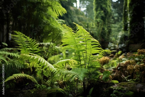 Ferns in a wild, overgrown garden.