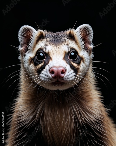 Ferret portrait view on plain black background