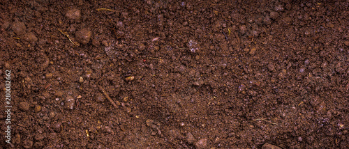Fertile soil with peat - panoramic background for agriculture