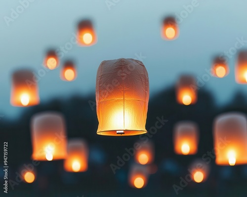 Festival-goers releasing lanterns with offerings into the sky as a memory tribute, Memory Festival, Spiritual offering