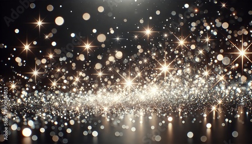 festive background of falling sparkling sparkles, bokeh, lights, sparks, stars on a blue background, Christmas Starfall