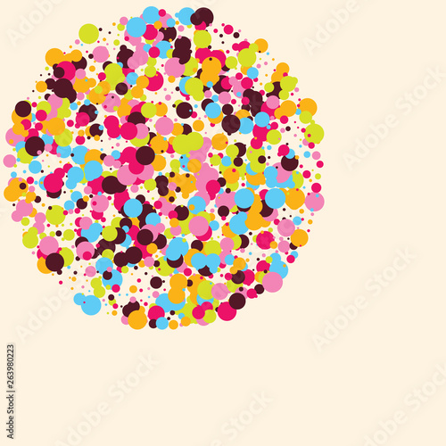 Festive background with multicolored confetti. Yellow, pink, blue circles but against a white background. Flying confetti.