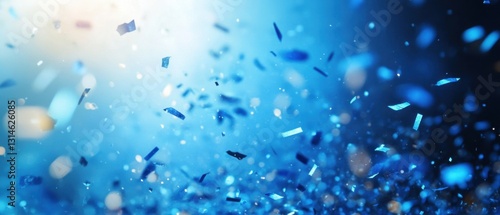 Festive blue confetti explosion on a bright background creating a celebratory atmosphere perfect for party invitations and event promotions