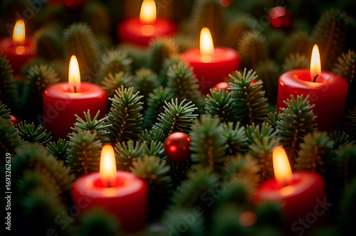 Festive Christmas Candle Arrangement with Evergreen Branches and