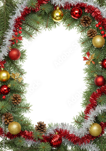 Festive Christmas Frame With Red And Gold Ornaments on Transparent PNG