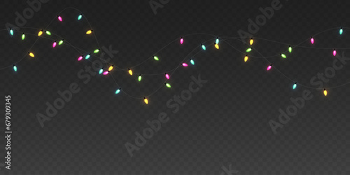 Festive Christmas light gold garlands PNG. Decor element for postcards, invitations, backgrounds, business cards. Winter collection