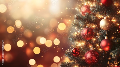 Festive Christmas Tree with Colorful Ornaments and Blurry Background