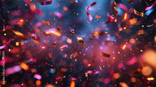 Festive confetti explosion with vibrant colors and bokeh effect.
