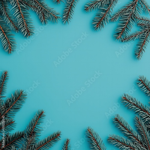 Festive Evergreen Pine Leaves Minimalist Background Studio Close-Up Holiday Vibes