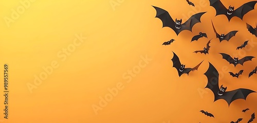 Festive Halloween greeting card design with bats and ghosts against an orange backdrop, in ultra HD.