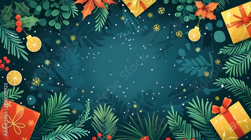 Festive Holiday Frame with Colorful Decorative Elements on Dark Background