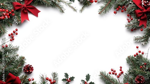 Festive Holiday Frame with Wreath, Bows, and Berries for Seasonal Decorations and Celebrations