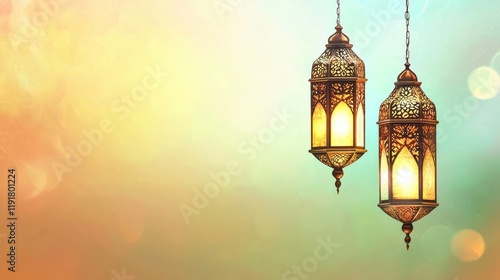 Festive lanterns illuminate a soft, blurred background; ideal for celebrations
