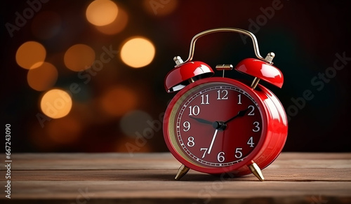 Festive New Year Alarm Clock on a Charming Christmas Wooden Background - Created with Generative AI Tools